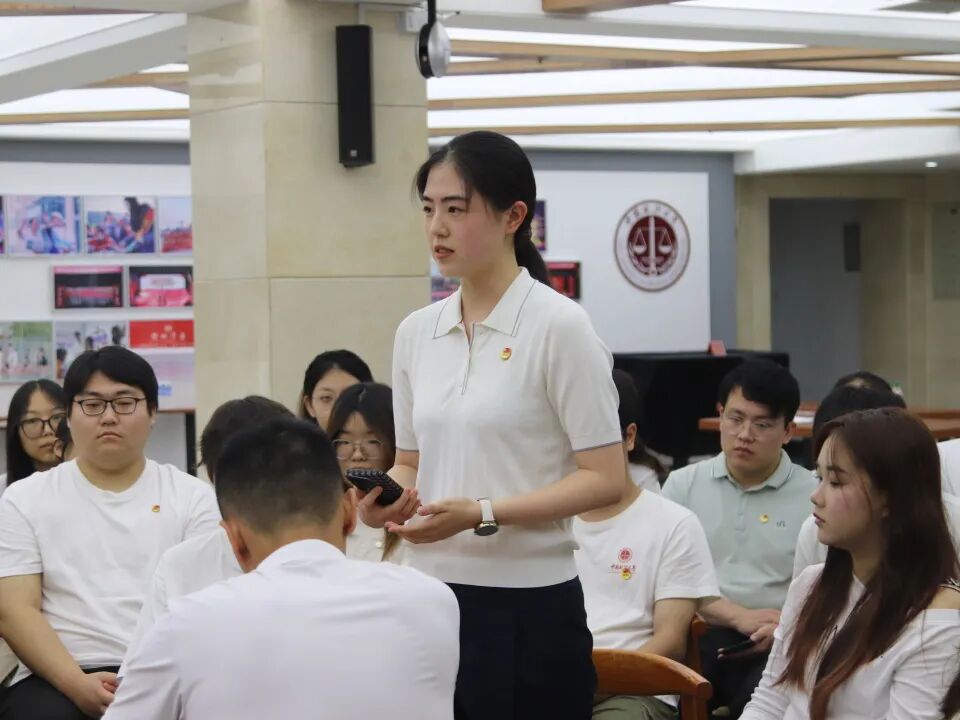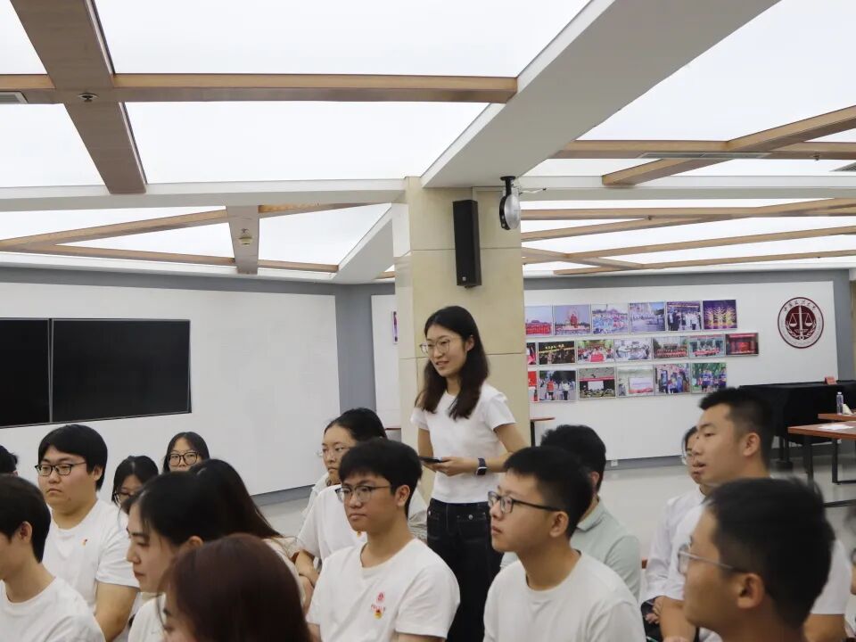 朱林首先回顾了我校服务保障演出任务的历程,对我校参演师生表示充分肯定,并结合自身参加服务保障国庆70周年、北京冬奥会等工作经历,分享个人观看纪念大会的认识,并与现场师生共同讨论大会的历史和现实意义、法大青年如何学习践行。与会师生意识到阅兵活动不仅是对国家军事力量的展示,更是对民族精神的凝聚,观看阅兵让他们更加坚定了为实现中华民族伟大复兴而努力学习的信念,思考着如何将阅兵中所展现的团结协作、拼搏奋进精神融入日常,以实际行动为祖国的发展贡献力量。