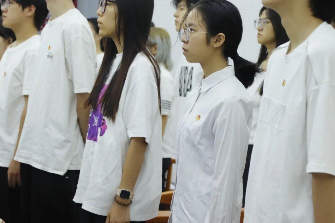 8时30分,参与活动的同学们统一着装、佩戴团徽、有序就座,静待阅兵仪式开始。在阅兵活动正式开始前,首都40所高校的3000名师生齐聚天安门广场,为纪念大会献唱,其中有我校82名师生光荣参与,以青春之歌致敬峥嵘岁月,现场观看视频的同学致以热烈的掌声。